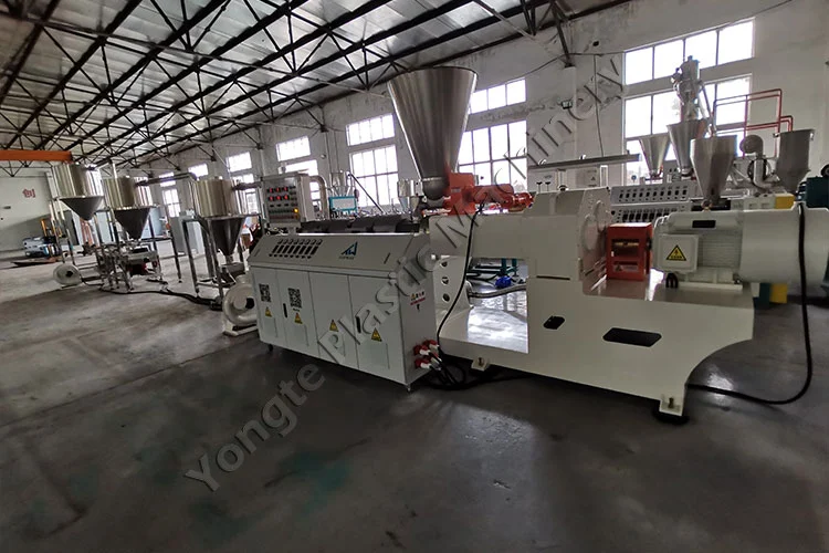 در سال 2024، ما یک دستگاه گلولهسازی ترکیبی PVC سفارشی را برای مشتری لهستانی مهندسی کردیم، که به طور خاص برای تولید گرانولهای مستربچ PVC از پرکننده PVC و CaCO3 بازیافت شده طراحی شده بود. محتوای پرکننده CaCO3 را می توان به طور انعطاف پذیر بین 40٪ تا 80٪ تنظیم کرد تا با مشخصات تولید مشتری مطابقت داشته باشد. اجزای کلیدی شامل یک فیدر اتوماتیک، یک اکسترودر دو پیچ مخروطی SJSZ80/156 (موتور 75 کیلووات با اینورتر فرکانس ABB، مصرف حدود 50 کیلووات در حین کارکرد پایدار)، قالب گندله سازی داغ برای برش گرانول یکنواخت، و یک سیستم خنک کننده هوای سریع متحرک سه مرحله ای فولاد ضد زنگ 304 است. این دستگاه به ظرفیت تولید 300-400 کیلوگرم در ساعت دست می یابد و برای کارکرد مداوم 24/7 با زمان توقف صفر ساخته شده است. نصب بدون درز انجام شد و توسط تیم متخصص Yongte پشتیبانی شد که کمک سرتاسری ارائه کرد. پس از نصب، آموزش در محل کارکنان مشتری را قادر می سازد تا تجهیزات را به طور ماهرانه کار کنند، در حالی که پشتیبانی فنی از راه دور از طریق راهنمایی ویدیویی حل و فصل سریع هر گونه مشکل را تضمین می کند، تولید بدون وقفه و اوج عملکرد را حفظ می کند.